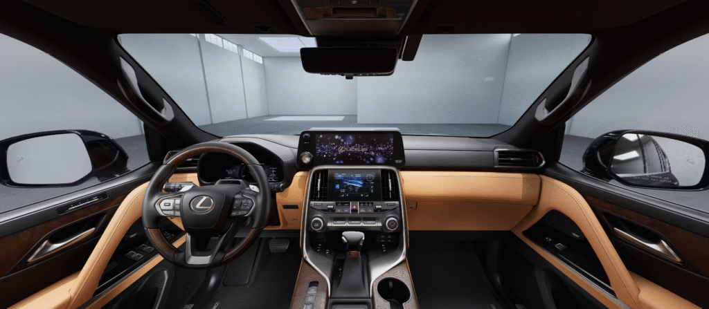 El interior cuenta con madera de poro abierto, abundante cuero genuino, un sistema de sonido Mark Levinson de 25 parlantes y 2,400 watts, pantallas dobles de 12.3 pulgadas para info y instrumentos, y suficientes puertos USB-C para mantener a todos con carga, el vidrio acústico, la aislación meticulosa de la cabina y la obsesión de Lexus por el detalle crean un santuario interior, mientras los asientos delanteros ofrecen gran comodidad, y los traseros no se quedan muy atrás.